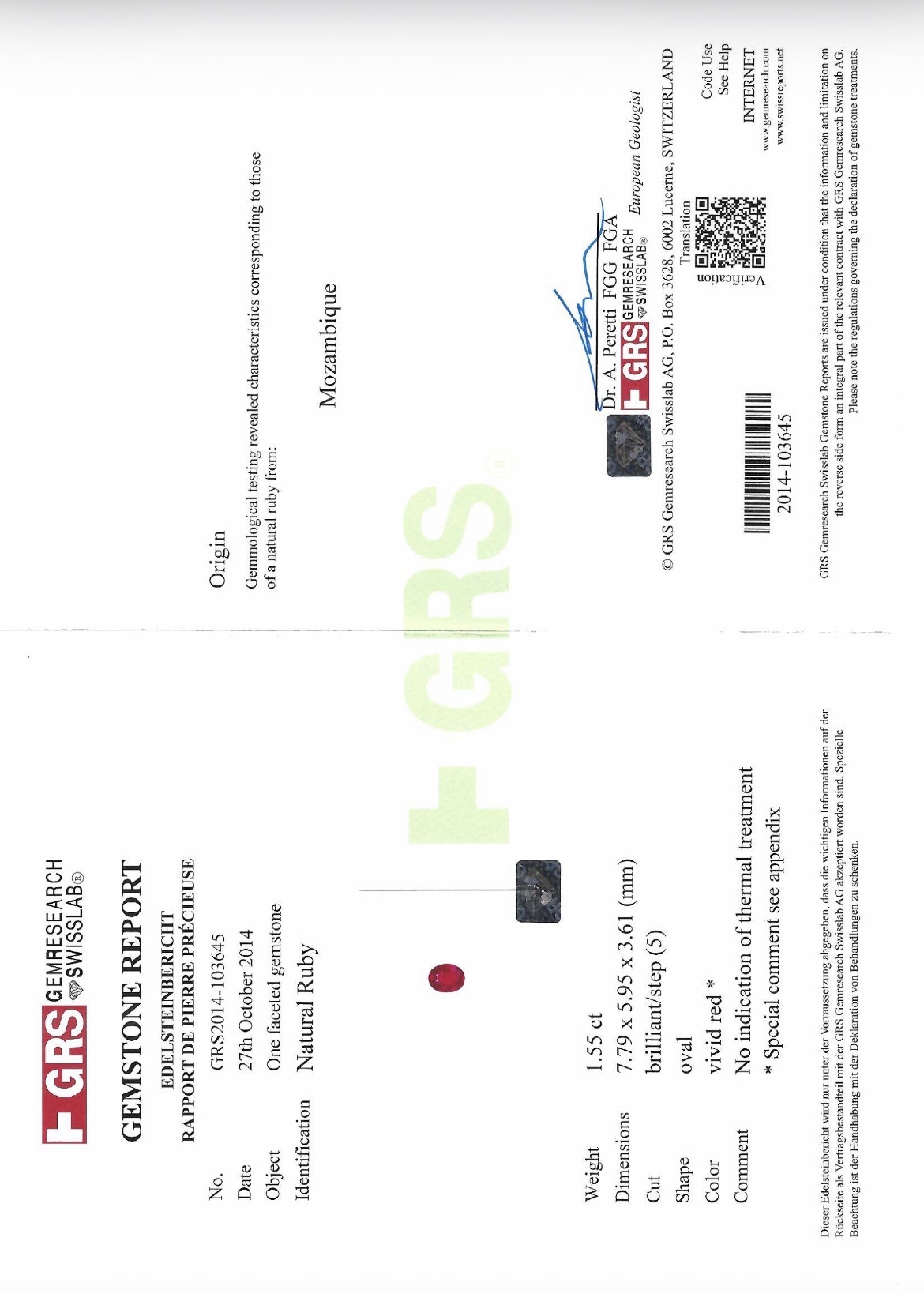 Pierre avec certificat voir photo galerie