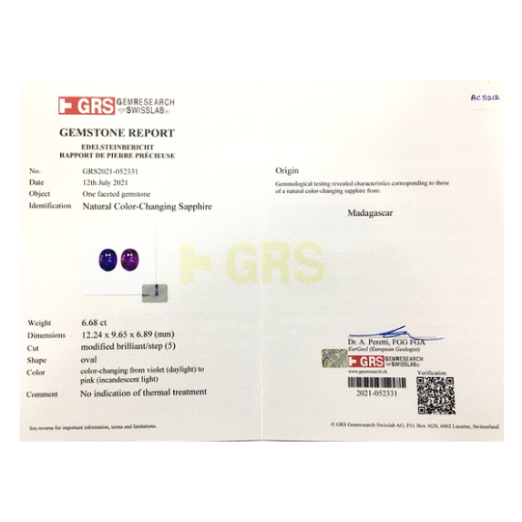 / 50090 Saphir violet Non Chauffé 12.24×9.65 6.68 cts